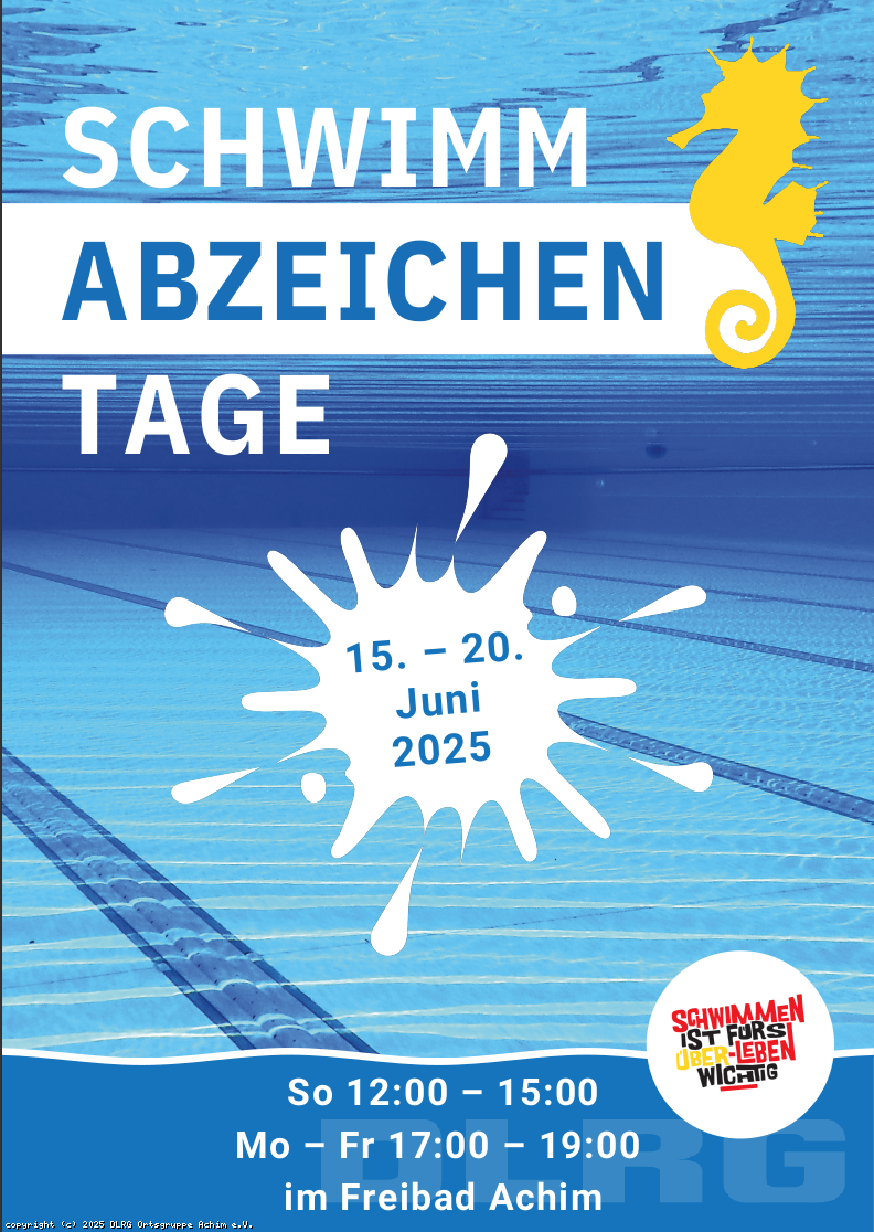 Die Schwimmabzeichentage 2025 liegen hinter uns und das diesjährige Ergebnis kann sich mit insgesamt 39 Schwimmabzeichen sehen lassen. Zusammen mit der DRK Wasserwacht und dem TSV Achim Abt. Schwimmen haben wir vom 15.06.2025 bis 20.06.2025 folgende Schwimmabzeichen im Freibad abgenommen: